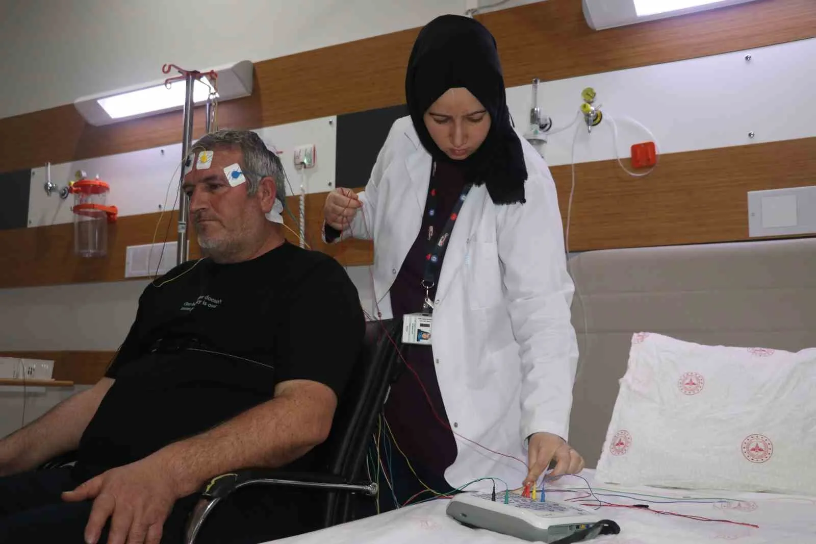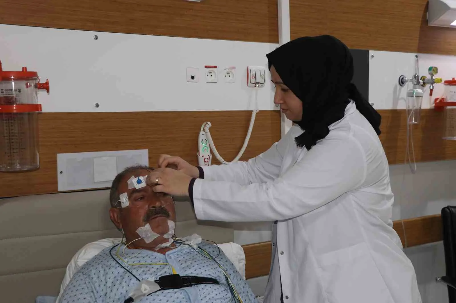 Geceleri uyurken nefes almakta zorlandığı için ölüm korkusu ile uyuduğunu ifade eden hasta Kadir Doğanay (59),”Geceleri rahat uyuyamıyordum. Boğulma hissiyatı yaşıyordum, nefesim kesiliyor, kalbim duracakmış gibi oluyordu. Ölüm korkusu ile uyuyordum. Geceleri eşim beni uyandırıyordu. Burada uyku testim yapıldı, birtakım kablolar takıldı. Bu kablolar ile beni sabaha kadara izleyecekler ve ona göre de sonucum çıkacak. Önceden Cumhuriyet Üniversitesi Hastanesinde vardı şuanda da Numune Hastanesinde de var ve bu biz hastalar için daha iyi oldu. Günlerce, aylarca sıra beklemiyoruz. Bu da bizim için çok iyi oldu” şeklinde konuştu.