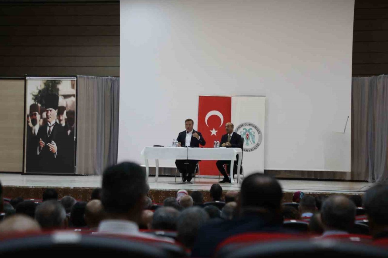 2025-2026 eğitim-öğretim yılı öncesi istişarelerde bulunmak ve yeni döneme ilişkin hedefleri paylaşmak amacıyla düzenlenen toplantıda, Vali Aydoğdu yaptığı konuşmada eğitimin bir meslekten öte, bir gönül işi olduğunu ifade ederek “Eğitim sadece bir görev değil; aynı zamanda bir sevda, bir gönül işidir. Öğretmenlerimiz ve okul müdürlerimiz, gençlerimizin geleceğini şekillendiren en önemli aktörlerdir. Toplumumuzun sizlere ihtiyacı var. Sizler, sadece öğrencilerden değil; tüm toplumdan sorumlusunuz. Bu sorumluluğun bilinciyle hareket ederek gençlerimizi en iyi şekilde yetiştireceğinize inanıyorum.” dedi.