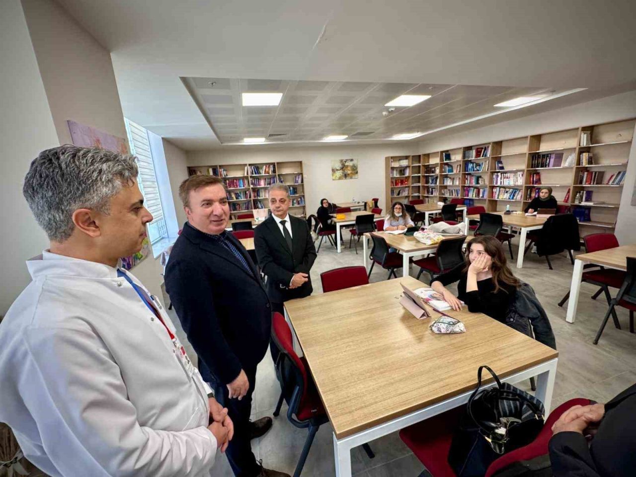 Daha sonra hastane içerisinde bulunan kütüphaneyi de ziyaret ederek incelemelerde bulunan Vali Hamza Aydoğdu, kütüphanede bulunan tıp fakültesi öğrencileriyle bir süre hasbihâl ederek öğrencilere başarılar diledi.
