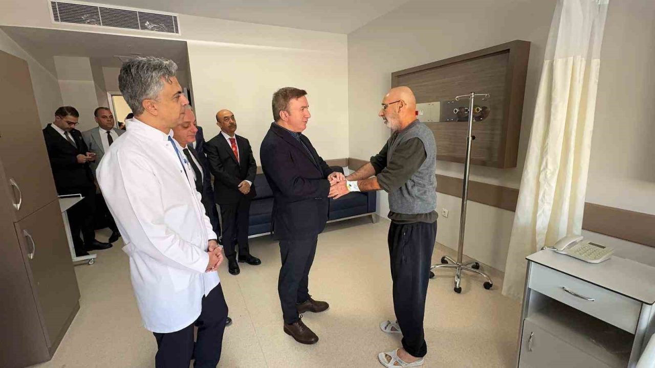 Hastanede tedavi gören hastalarla bir süre görüşen, kendilerine geçmiş olsun dileklerini ileterek acil şifalar dileyen Vali Aydoğdu, hastaların sağlıklarına kavuşmaları için fedakarca görev yapan İl Sağlık Müdürü Dr. Sn. Cihan Tekin, Hastane Başhekimi Prof.Dr. Ufuk Kuyrukluyıldız, tüm doktorlara ve sağlık personeline teşekkür ederek, görevlerinde başarılar ve kolaylıklar diledi.