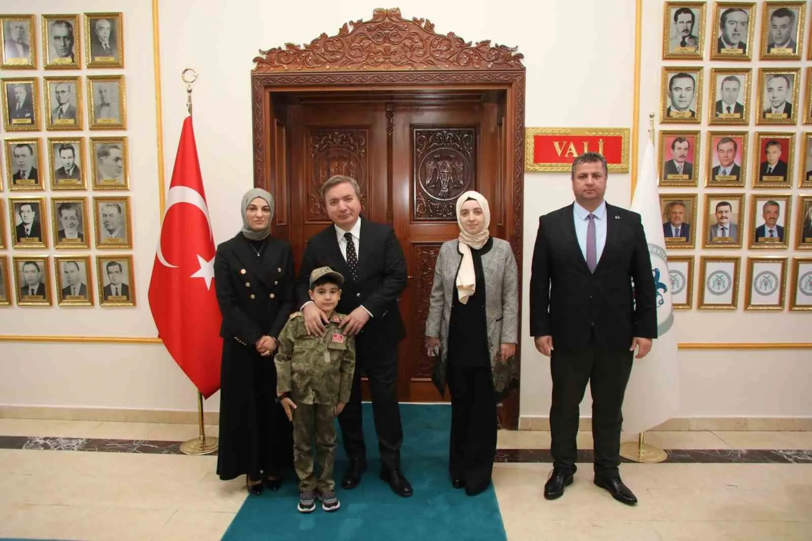 Erzincan Valisi Hamza Aydoğdu, şehit Piyade Uzman Çavuş Eren Öztürk’ün ailesine Cumhurbaşkanı Recep Tayyip Erdoğan tarafından tevdi edilen Devlet Övünç Madalyasını takdim etti.