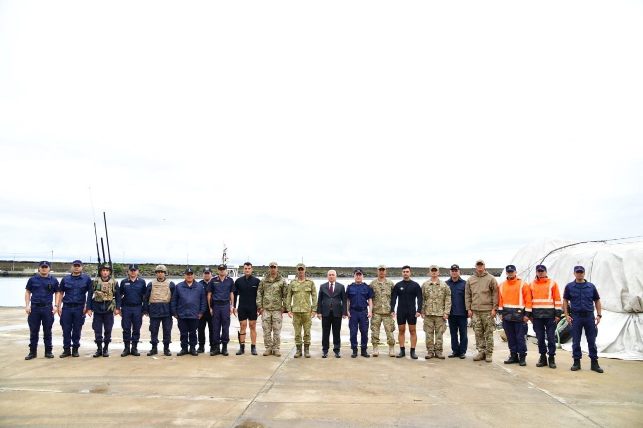 TRABZON’UN ÇARŞIBAŞI İLÇESİ AÇIKLARINDA AVCILIK YAPAN BALIKÇILAR TARAFINDAN ELE GEÇİRİLEN VE BU SABAH İMHA EDİLEN İNSANSIZ DENİZ ARACI İLE İLGİLİ VALİ AZİZ YILDIRIM, İMHA ÇALIŞMALARINI YÜRÜTEN GÜVENLİK GÜÇLERİNİ ZİYARET EDEREK SAHİL GÜVENLİK DOĞU KARADENİZ GRUP KOMUTANI SG BİNBAŞI AYTAÇ BAYIRLI VE DİĞER YETKİLİLERDEN BİLGİ ALDI.