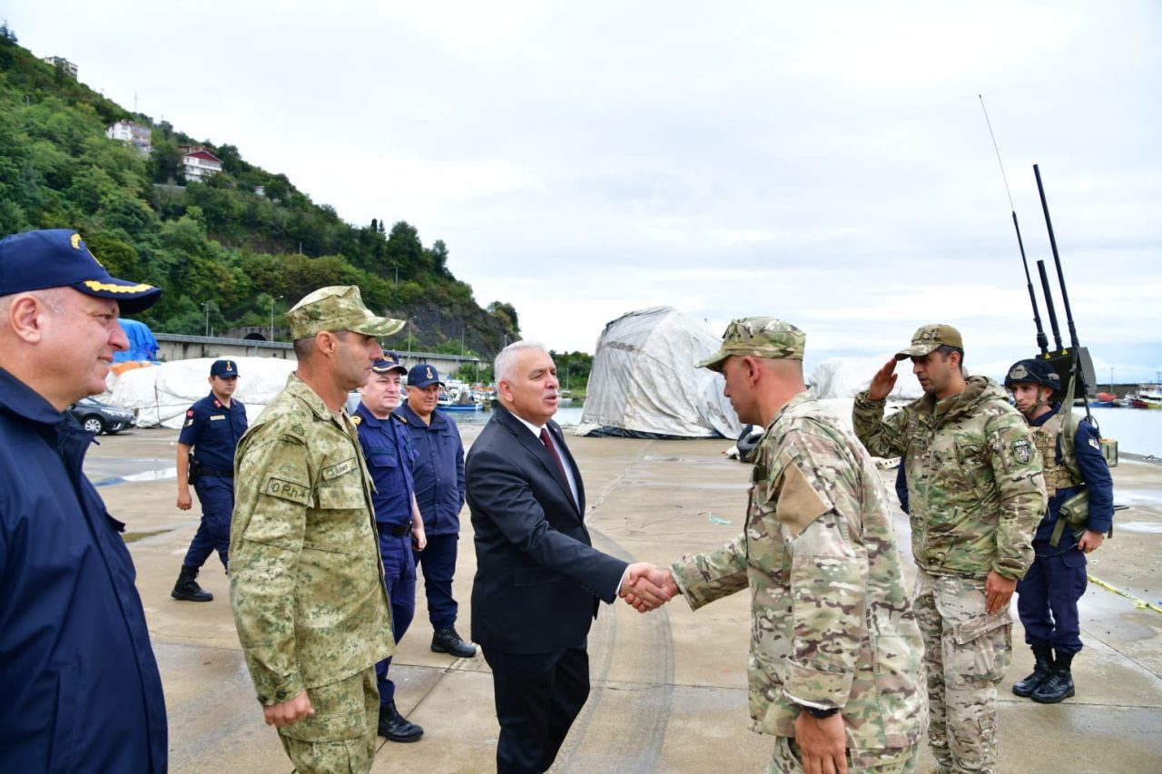 Trabzon’un Çarşıbaşı ilçesi açıklarında avcılık yapan balıkçılar tarafından ele geçirilen ve bu sabah imha edilen insansız deniz aracı ile ilgili Vali Aziz Yıldırım, imha çalışmalarını yürüten güvenlik güçlerini ziyaret ederek Sahil Güvenlik Doğu Karadeniz Grup Komutanı SG Binbaşı Aytaç Bayırlı ve diğer yetkililerden bilgi aldı.