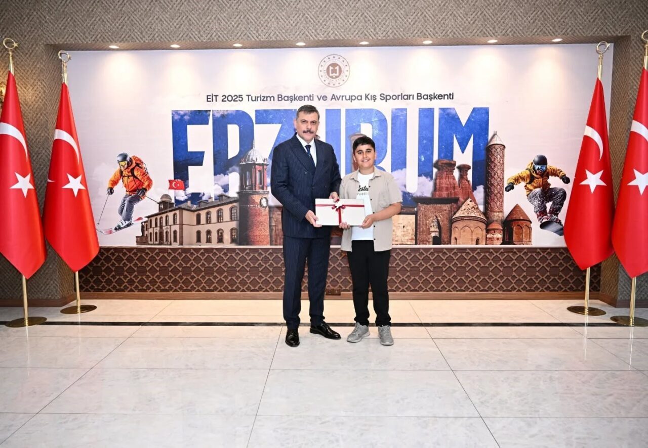 Ziyaret kapsamında ayrıca, Bursluluk Sınavı’nda 500 tam puan alarak Türkiye birincisi olan Pasinler TOBB Efkan Ala İmam Hatip Ortaokulu 5. sınıf öğrencisi Yusuf Can Çiftçioğlu’na da hediye takdim edildi.