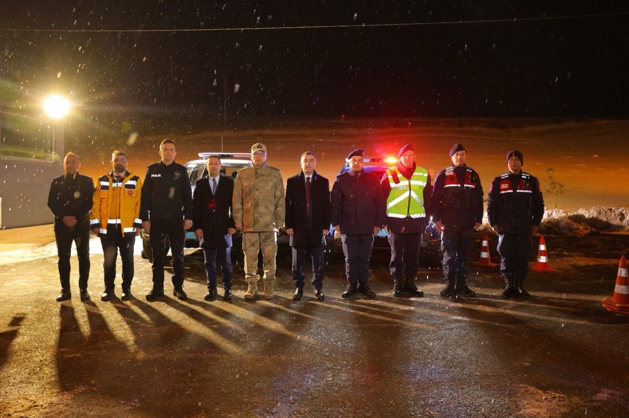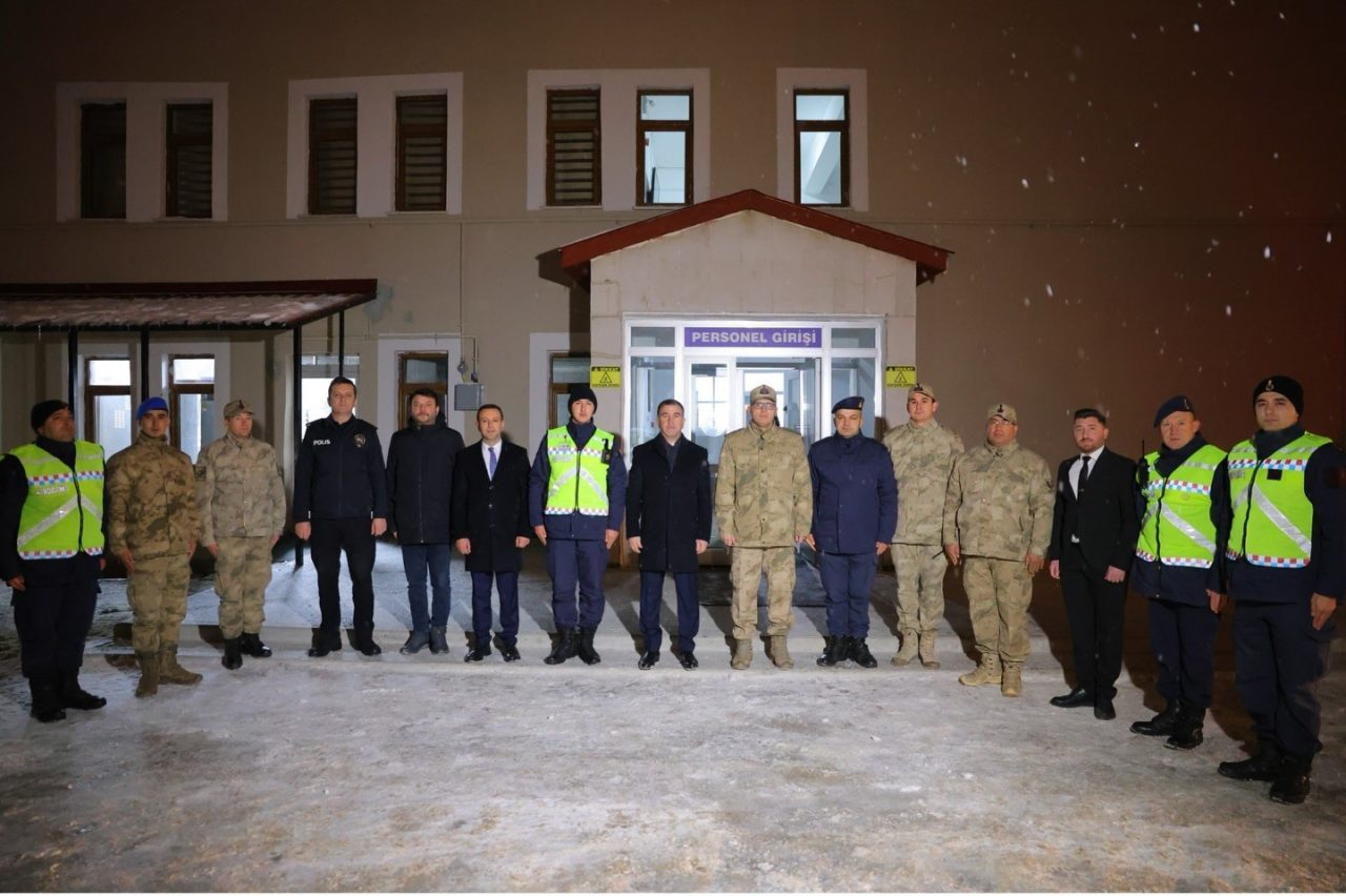 Bayburt Valisi Mustafa Eldivan, 2025 yılının son saatlerinde İl Jandarma Komutanlığı ile Jandarma Yol Kontrol ve Trafik Uygulama noktalarında görevli ekipleri ziyaret ederek, yeni yıl dileklerini iletti.