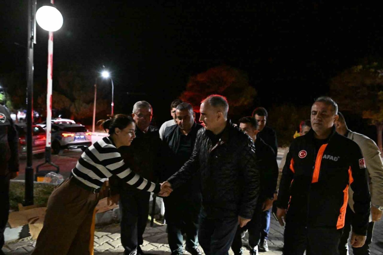 Depremden etkilenen vatandaşlara yönelik alınan tedbirler ile hasar gören ev ve binalarda yürütülen çalışmalara ilişkin yetkililerden bilgi alan Vali Özkan, vatandaşlara geçmiş olsun dileklerini ileterek, sürecin yakından takip edildiğini vurguladı.
