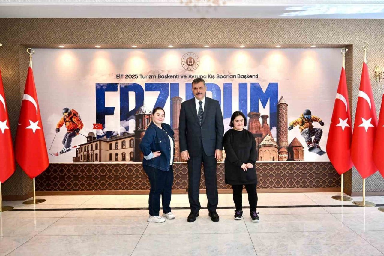 Çağla Okyay ve Elif Ademoğlu isimli down sendromlu özel çocuklar, Erzurum Valiliği’nde göreve başladılar.