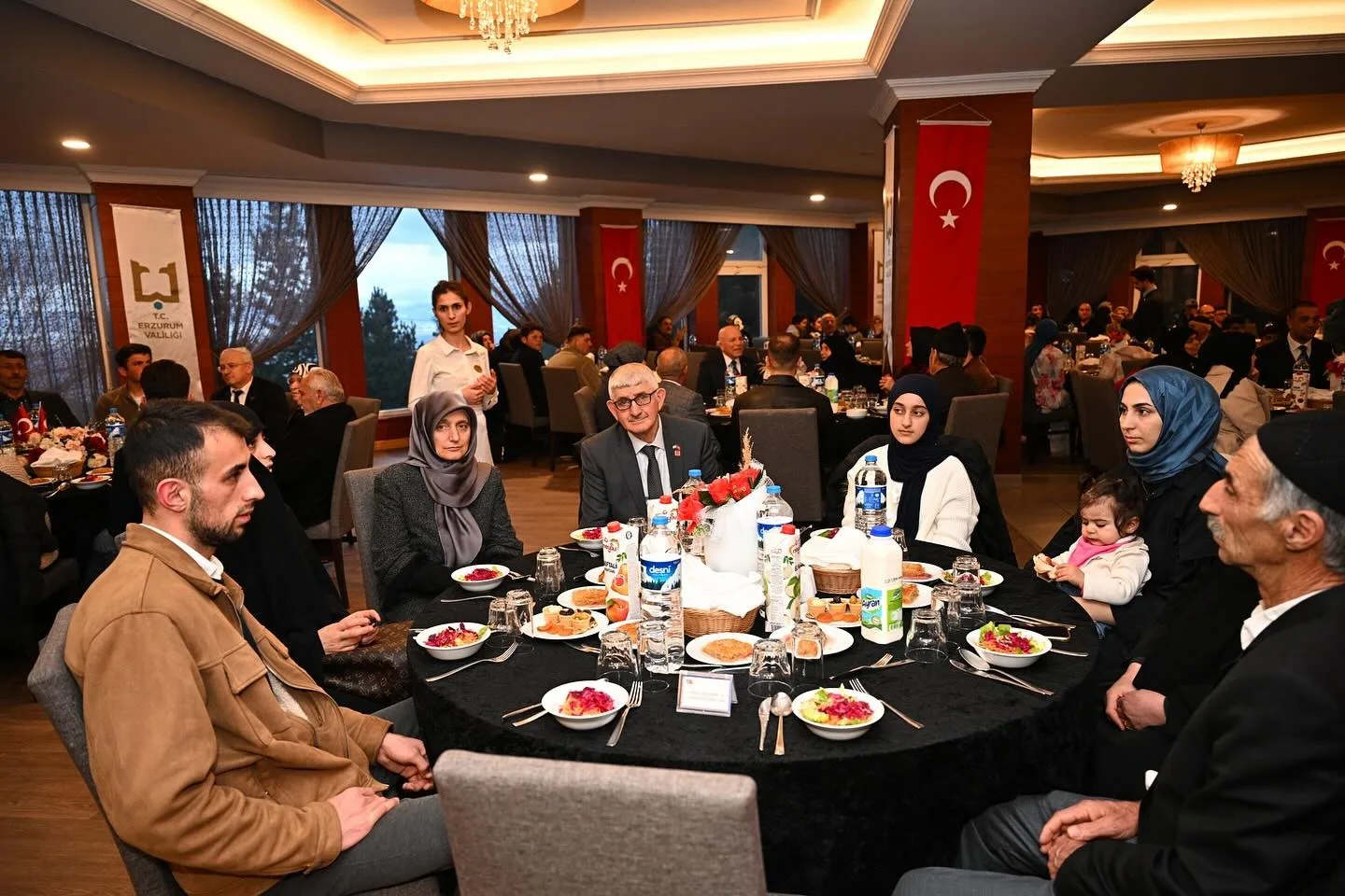 Erzurum protokolü, Valilik tarafından düzenlenen iftar programında şehit yakınlarıyla bir araya geldi.