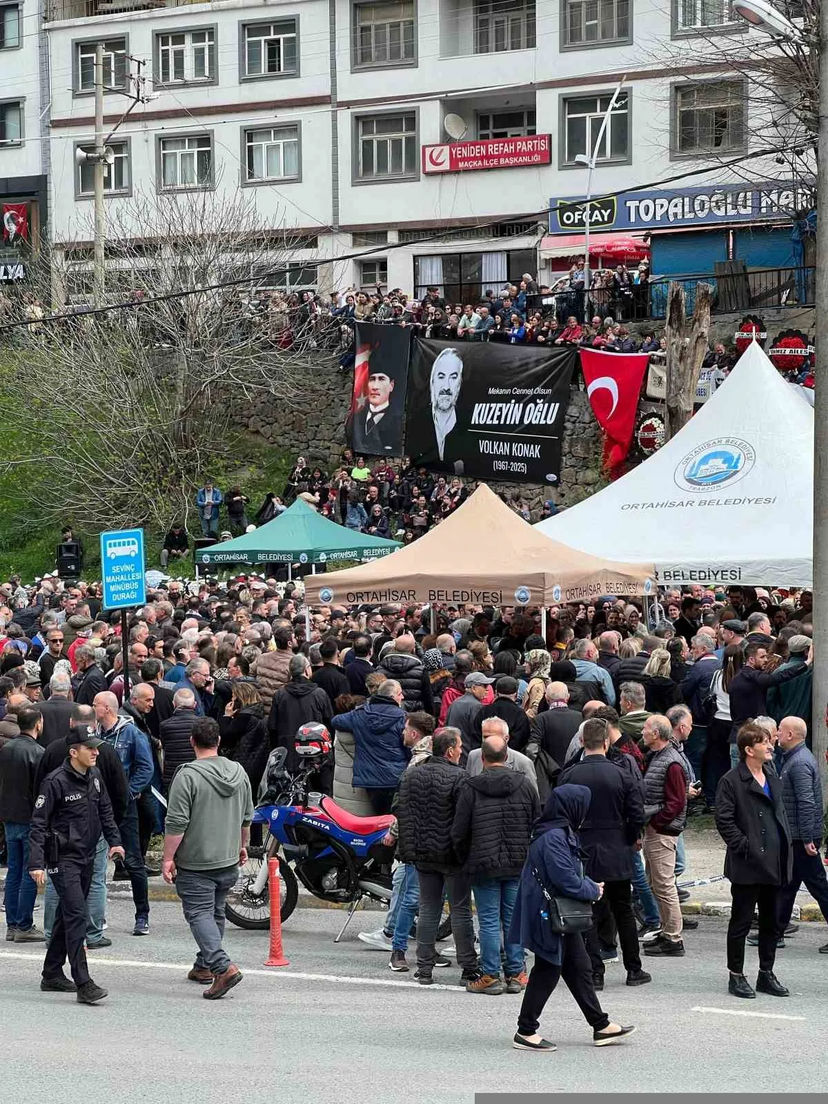 KONAK’IN CENAZESİ, MAÇKA İLÇE MERKEZİNDE HAZIRLANAN ALANDA ÖĞLE VAKTİ KILINAN CENAZE NAMAZININ ARDINDAN İLÇEDEKİ GÜNEY MAHALLESİ’NE GETİRİLDİ.