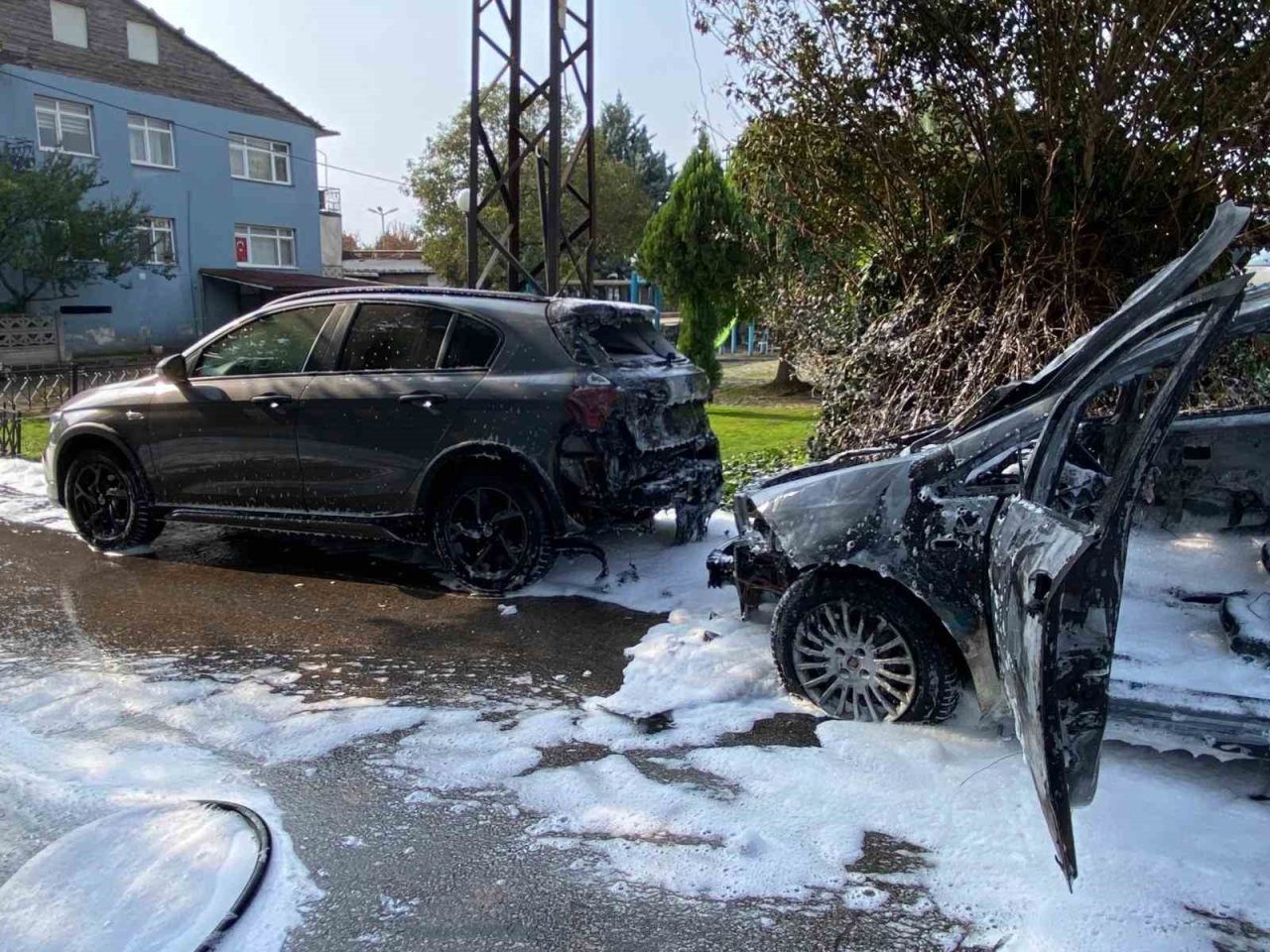 Kocaeli’de yakıt aldıktan sonra alev alan otomobildeki yangın bitişikteki başka bir araca da sıçradı. Yangında 2 araç da kullanılmaz hale gedi.