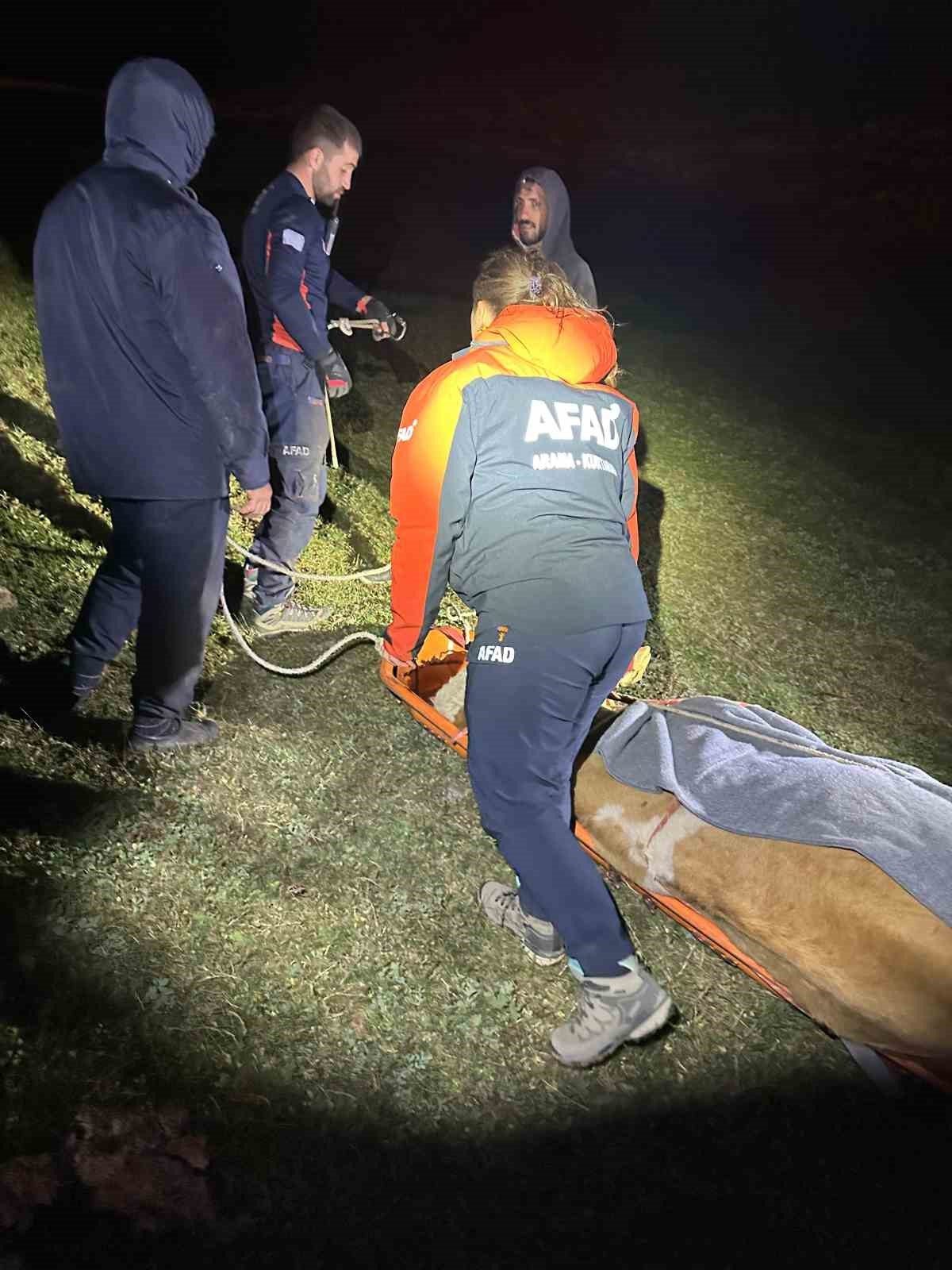 Artvin’in Şavşat ilçesinde merada otlarken yamaçtan düşen bir inek, AFAD ekiplerinin 12 saat süren çalışmasıyla kurtarıldı.