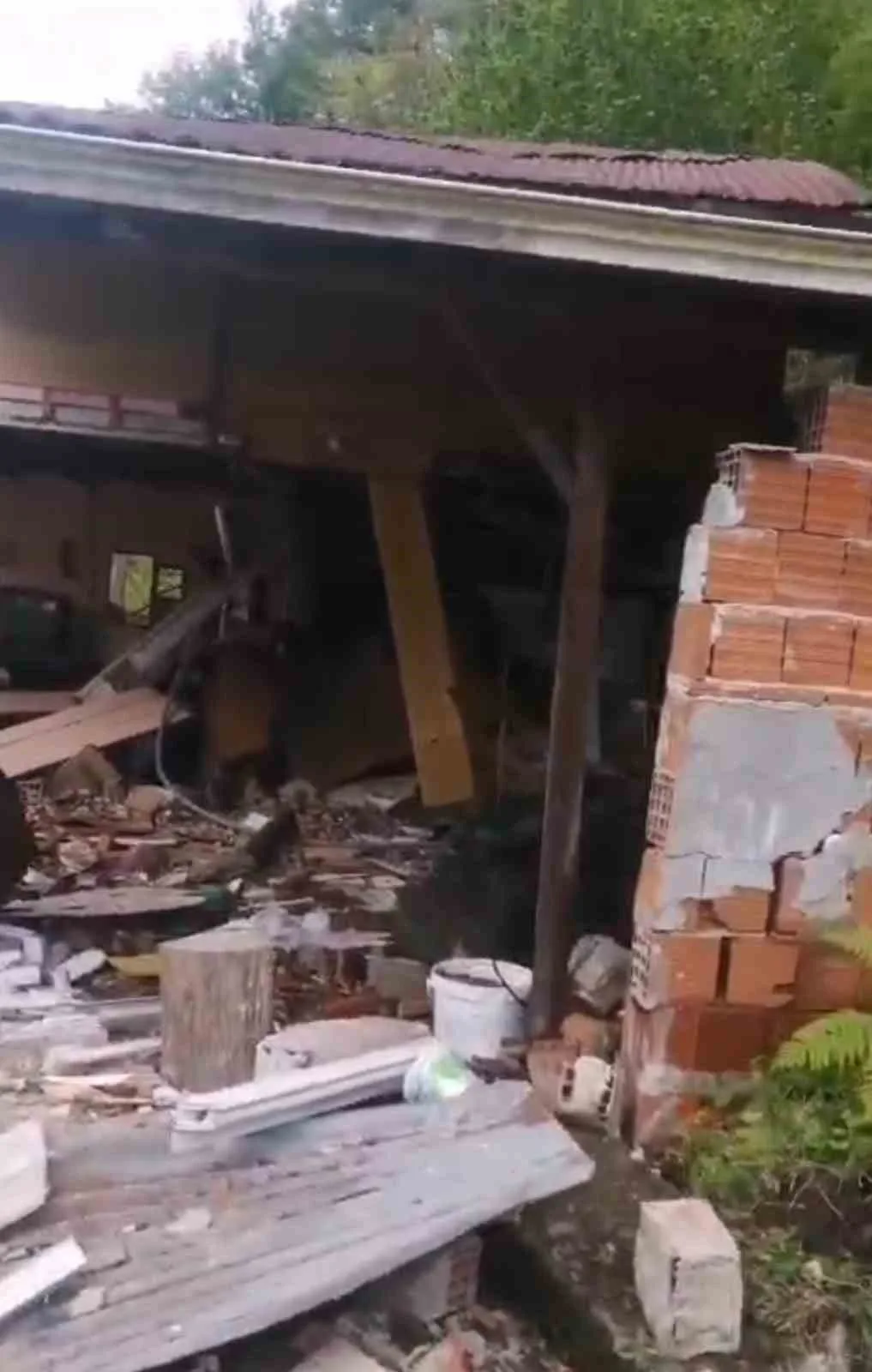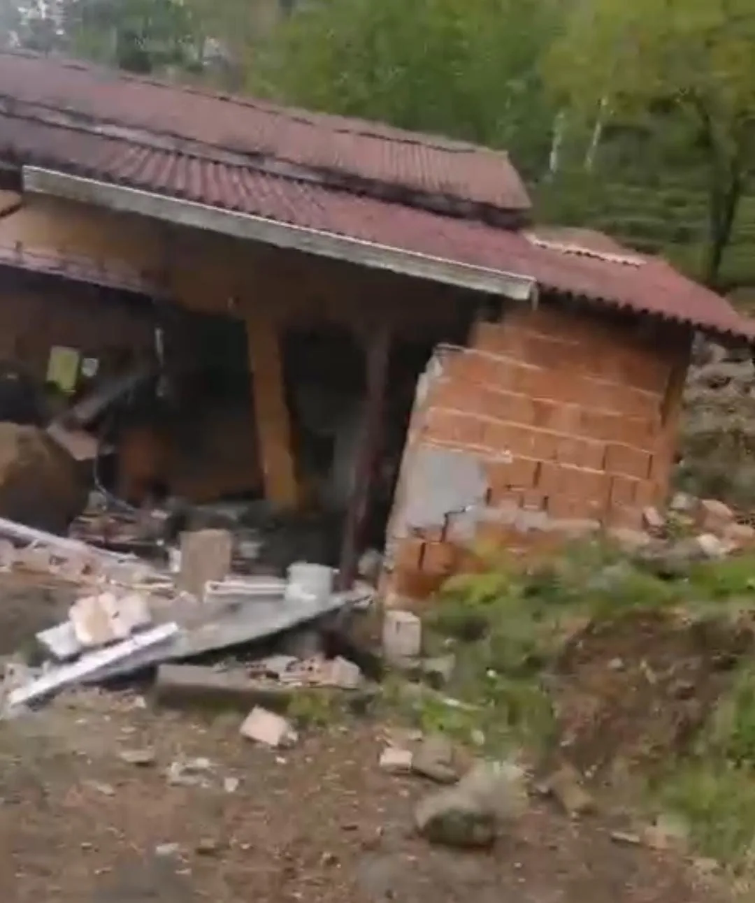 Rize’de yamaçtan kopan kayaların çarptığı ev kullanılmaz hale geldi.