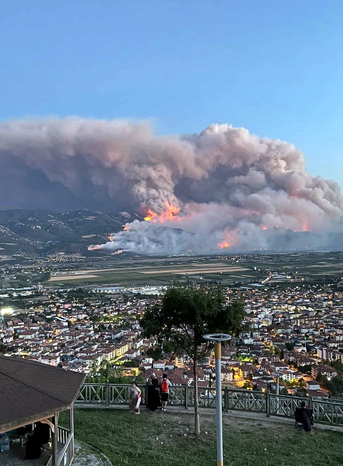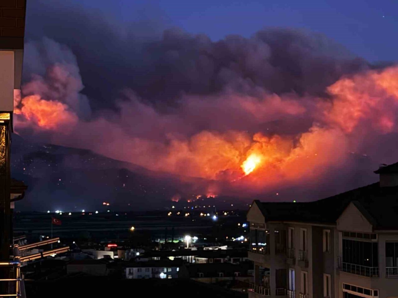 BÖLGEYE SEVK EDİLEN EKİPLER YANGINI SÖNDÜREBİLMEK İÇİN KARADAN VE HAVADAN MÜDAHALEYİ SÜRDÜRÜYOR. ALEVLER, TAHLİYE EDİLEN TAŞOLUK MAHALLESİ’NE SIÇRADI.