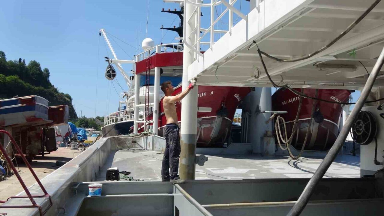 Karadeniz’de 1 Eylül’de başlayacak yeni balık avı sezonu öncesi balıkçılar teknelerin boya ve bakımlarını sürdürüyor.