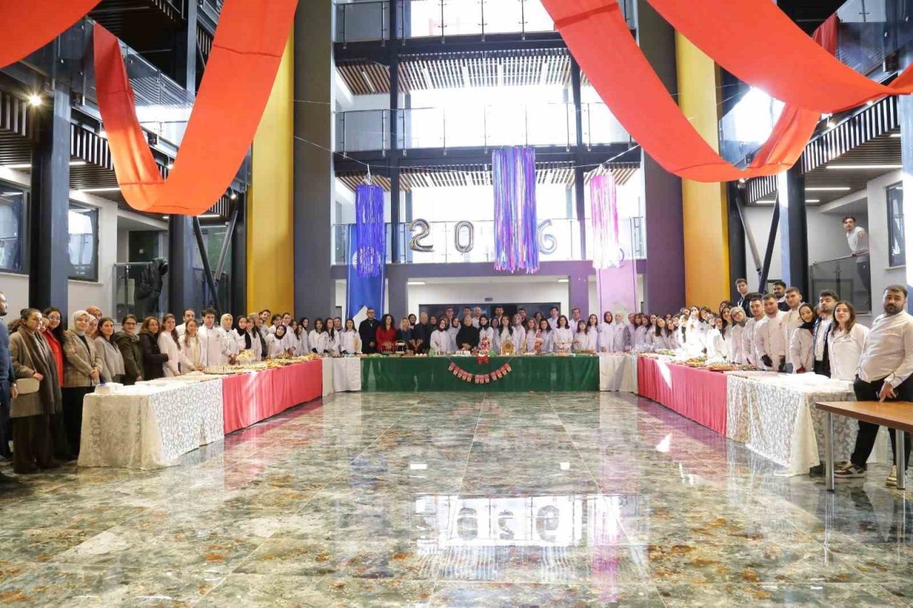Birinci sınıftan dördüncü sınıfa kadar öğrencilerin ders kapsamında hazırladığı ürünlerle şekillenen etkinlikte yılbaşı ruhunu yansıtan lezzetli yemekler, ginger house’lar, yılbaşı pastaları ve özgün konseptli sunumlar büyük beğeni topladı. Gastronomi öğrencilerinin emeği, renkli sunumlarla davetlilere unutulmaz anlar yaşattı.