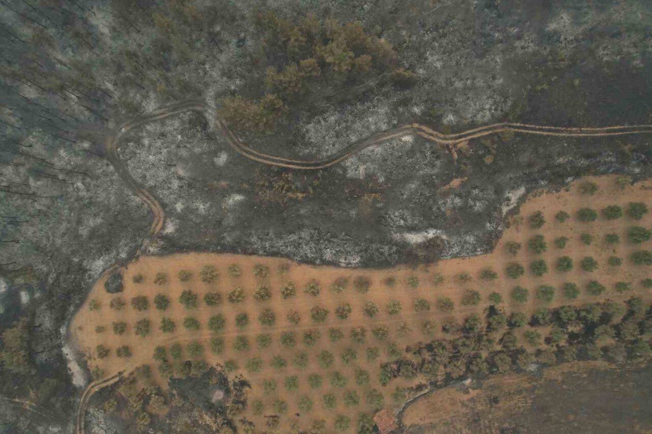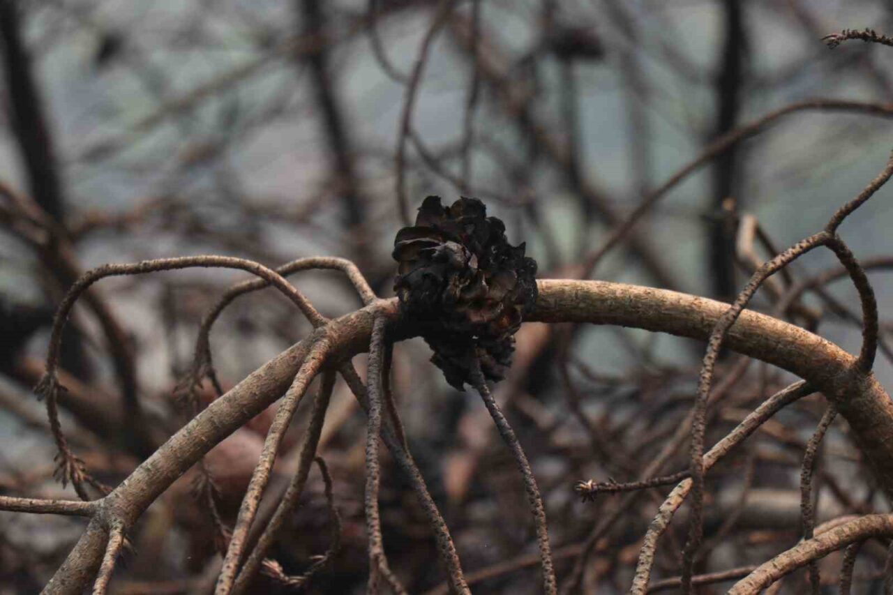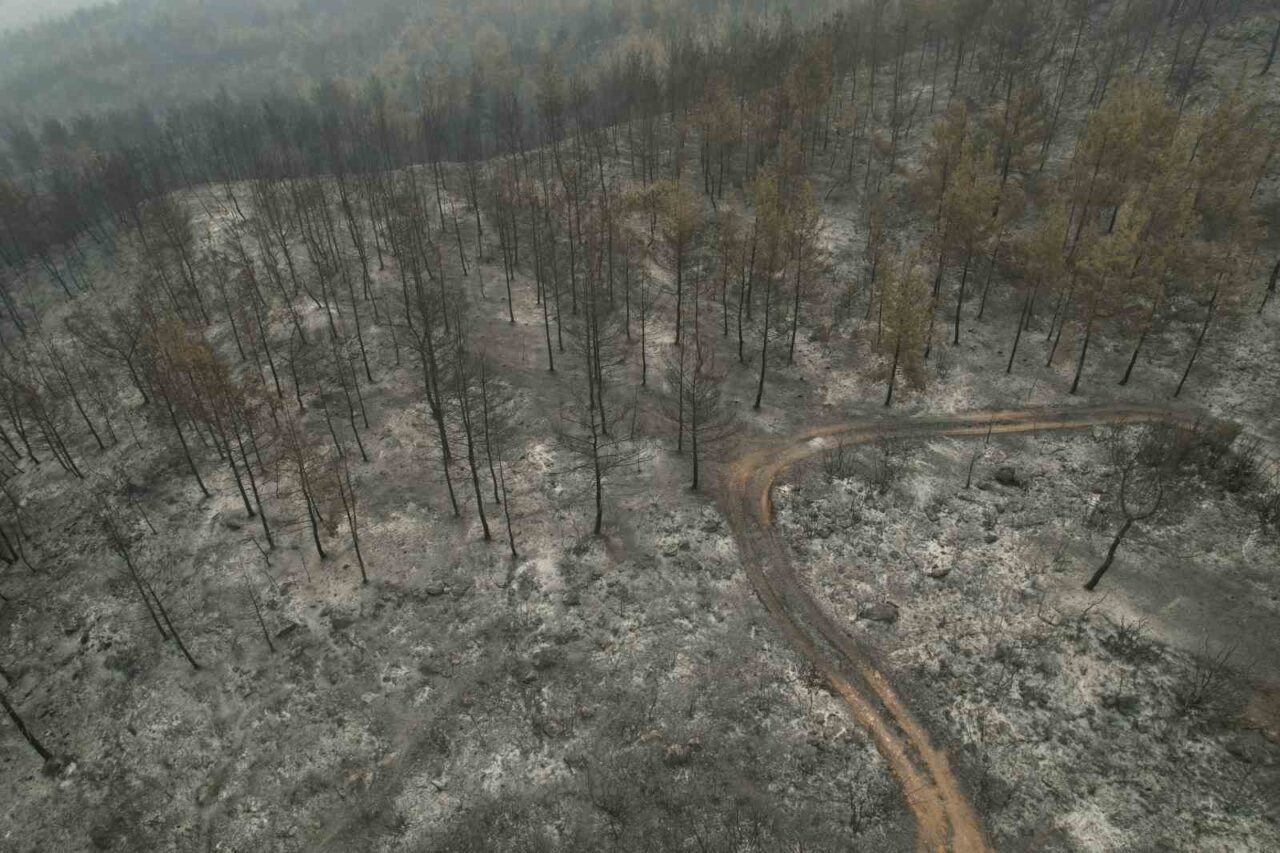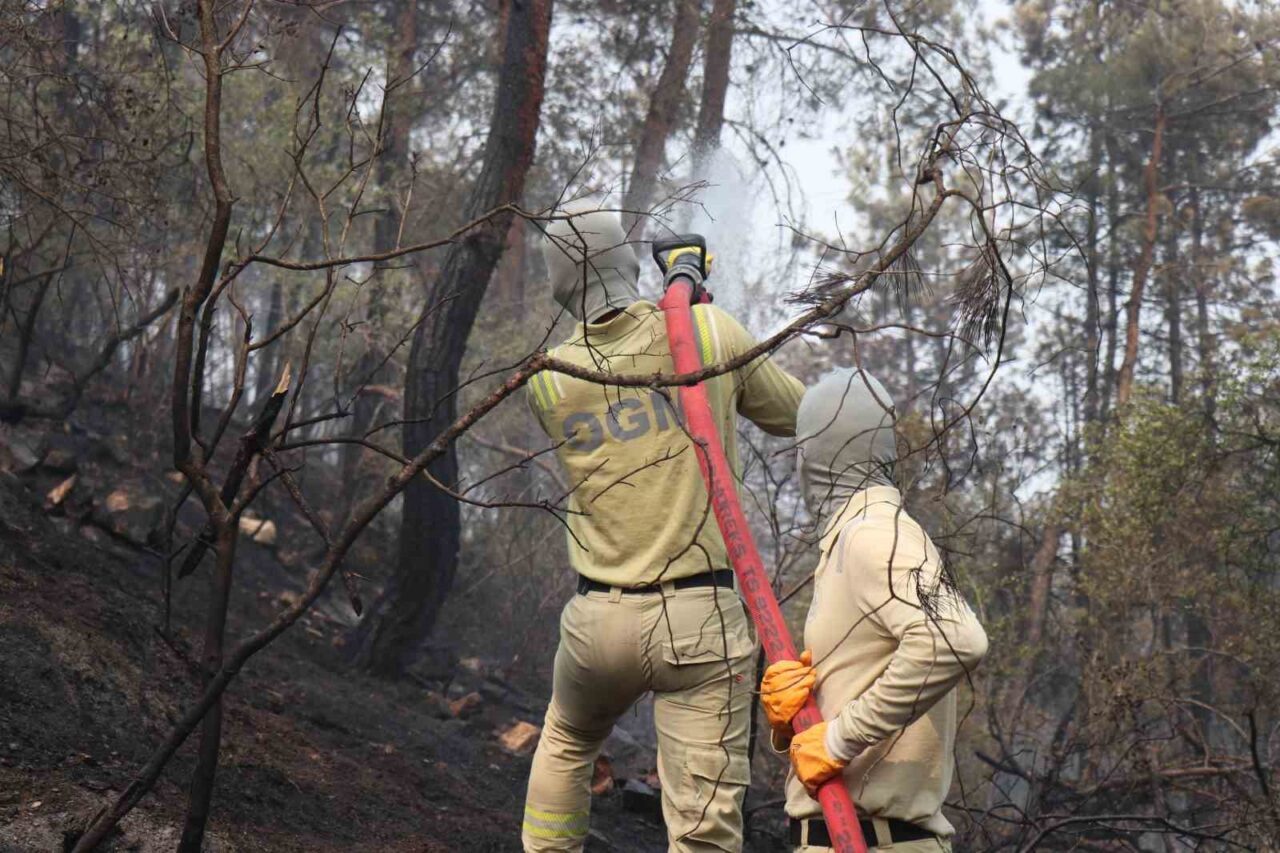 Hacılar Mahallesi’nde 20 Temmuz günü 17.15 sıralarında ormanlık alanda çıkan yangın, rüzgarın da etkisiyle büyüyerek kısa sürede geniş bir alana yayıldı. Yangının sıçradığı Taşoluk Mahallesi’nde 3 ev kullanılamaz hale gelirken, tedbir gayesiyle Hacılar ve Taşoluk mahalleleri tahliye edildi. Yangına ilk gün 5 uçak ve 8 helikopterle havadan, çok sayıda arazöz ve personelle de karadan müdahale edilirken ikinci günde 12 helikopter ve 6 yangın söndürme uçağı ile destek verildi. Yangının üçüncü gününde ise bölgeyi kaplayan yoğun duman ve sis altında ekipler, karadan müdahalelerini sürdürüyor. Ülkenin dört bir yanından gelen Orman Genel Müdürlüğü ve itfaiye ekipleri, ormanlık alan içinde söndürme ve bazı bölgelerde soğutma çalışmalarına devam ediyor. Alevlere teslim olan yeşil vatanın küle dönen bir kısmı da dron ile havadan görüntülendi.