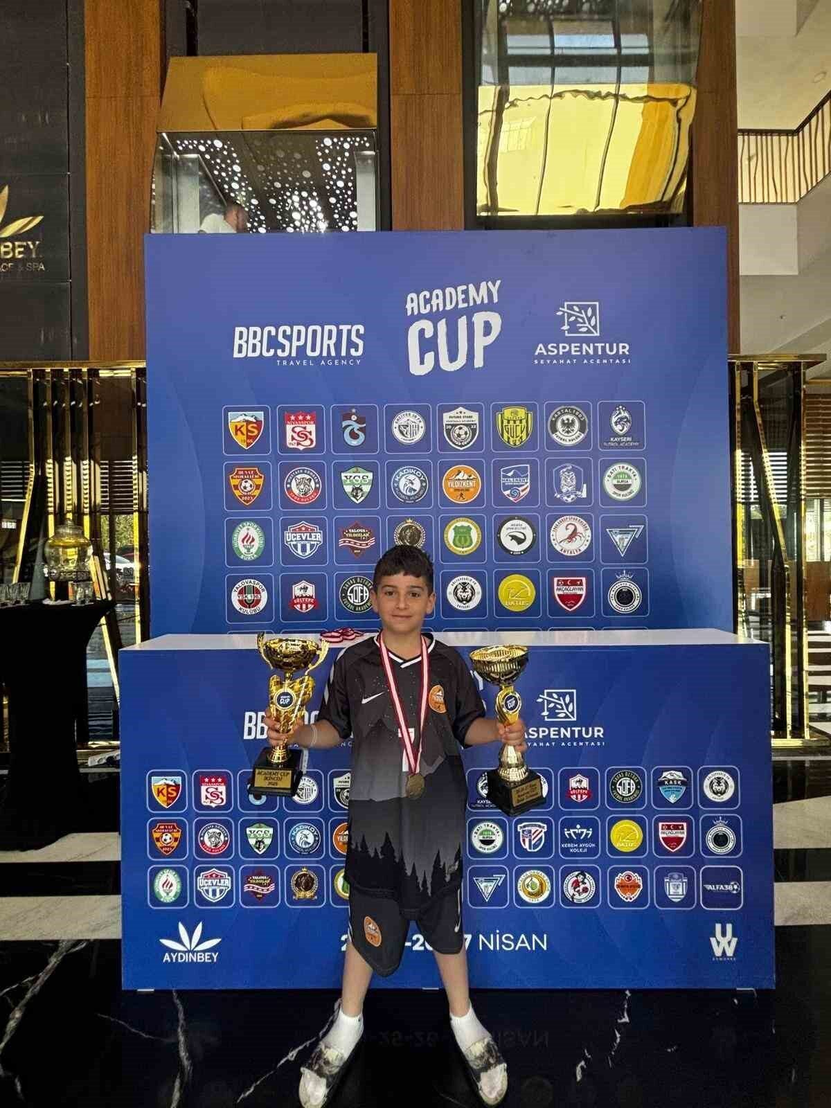 Erzurum’a çifte kupa ile dönen Yıldızkent Spor Kulübü Futbol Takımı geçtiğimiz sezon olduğu gibi bu sezonda gol kralı çıkardı. Geçtiğimiz sezon 9 golle turnuvanın gol kralı olan 2014 doğumlu Tuncay Aydın, bu sezon gol sayısını daha da artırdı. 17 golle kral olan geleceğin golcüsü ödülünü aldı. Minik golcüyü ilk tebrik eden isim Antrenörler Serkan Deniz ve Ferruh Çapan oldu. Academy Cup’tan çifte kupa ve bir de gol kralı ödülü ile dönen Yıldızkent Spor Kulübünü tebrik eden Erzurum Futbol İl Temsilcisi Ferit Karakoca, “Özel bir turnuva için Antalya’ya giden ve Erzurum’u temsil eden Yıldızkent Spor’un iki kupayla Erzurum’a dönmesi bizleri mutlu etmiştir. Ayrıca bu başarı amatör futbol camiamızı sevindirmiştir. Serkan Deniz ve Ferruh Çapan hocalarımın nezdinde sporcu kardeşlerimi tebrik ediyorum” dedi.