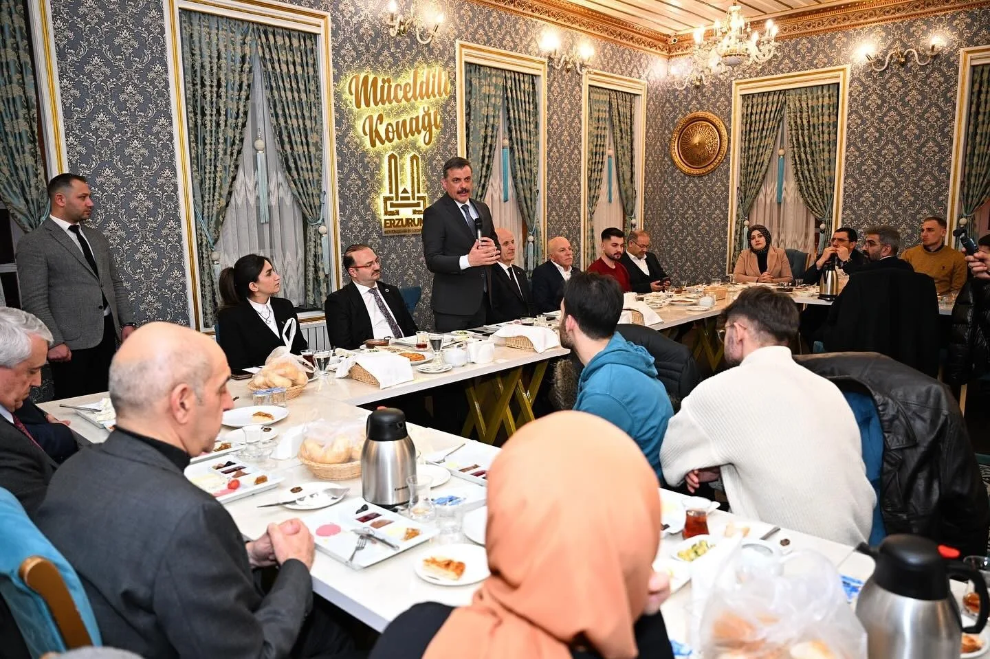 Müceldili konağında düzenlenen sahur programına Erzurum Valisi Mustafa Çiftçi, Yükseköğretim Kurulu (YÖK) Başkanı Prof. Dr. Erol Özvar, Erzurum Büyükşehir Belediye Başkanı Mehmet Sekmen, Atatürk Üniversitesi Rektörü Prof. Dr. Ahmet Hacımüftüoğlu, YÖK Başkan Vekili Prof. Dr. H. Haldun Göktaş, YÖK Yürütme Kurulu üyeleri Prof. Dr. Naci Gündoğan ve Prof. Dr. Erol Arcaklıoğlu ile üniversiteli gençler katıldı. Sahur programında öğrenciler sorunlarını dile getirme fırsatı da buldular.
