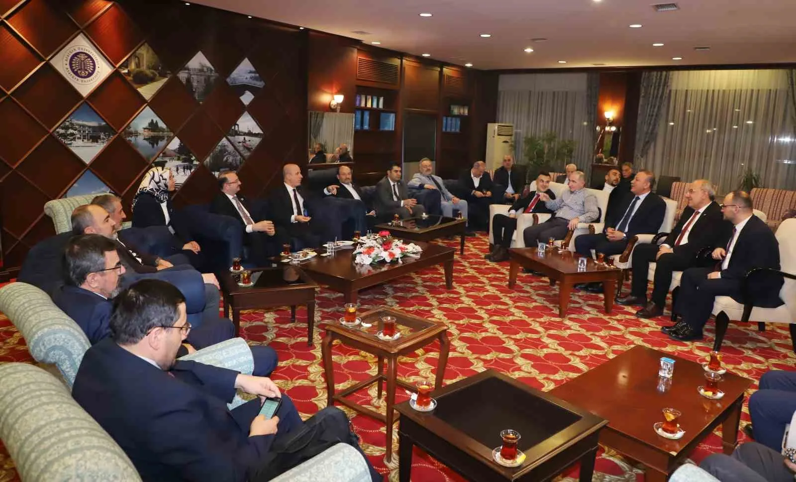 Atatürk Üniversitesi Rektörü Prof. Dr. Ahmet Hacımüftüoğlu ev sahipliğinde gerçekleşen ziyarete; Erzurum Teknik Üniversitesi Rektörü Prof. Dr. Bülent Çakmak, Kars Kafkas Üniversitesi Rektörü Prof. Dr. Hüsnü Kapu, Erzincan Binali Yıldırım Üniversitesi Rektörü Prof. Dr. Akın Levent, Amasya Üniversitesi Rektörü Prof. Dr. Ahmet Hakkı Turabi, Artvin Çoruh Üniversitesi Rektörü Prof. Dr. Mustafa Sıtkı Bilgin, Ağrı İbrahim Çeçen Üniversitesi Rektörü Prof. Dr. Abdulhalik Karabulut, Bitlis Eren Üniversitesi Rektörü Prof. Dr. Necmettin Elmastaş, Bingöl Üniversitesi Rektörü Prof. Dr. Erdal Çelik, Ardahan Üniversitesi Rektörü Prof. Dr. Mehmet Biber, Iğdır Üniversitesi Rektörü Prof. Dr. Mehmet Hakkı Alma, Tunceli Munzur Üniversitesi Rektörü Prof. Dr. Kenan Peker, Muş Alparslan Üniversitesi Rektörü Prof. Dr. Mustafa Alıcan, Bayburt Üniversitesi Rektörü Prof. Dr. Mutlu Türkmen, Gümüşhane Üniversitesi Rektörü Prof. Dr. Halil İbrahim Zeybek, Gaziantep İslam Bilim ve Teknoloji Üniversitesi Rektörü Prof. Dr. Şehmus Demir YÖK Bölge Üniversiteleri Koordinasyon Toplantısına katıldı.