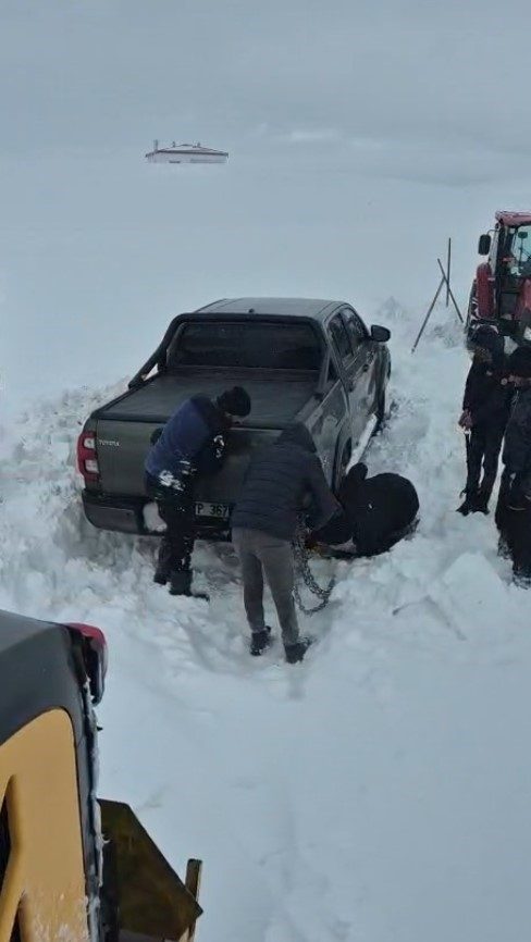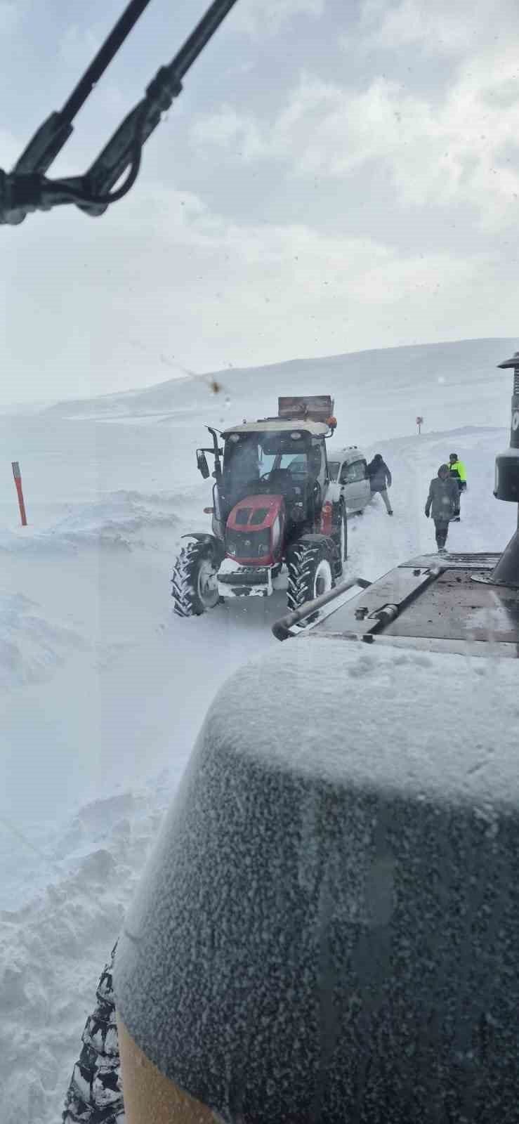Sivas’ta yoğun kar yağışı nedeniyle yolda kalan araçlar, karla mücadele ekiplerinin çalışması sonucu kurtarıldı.