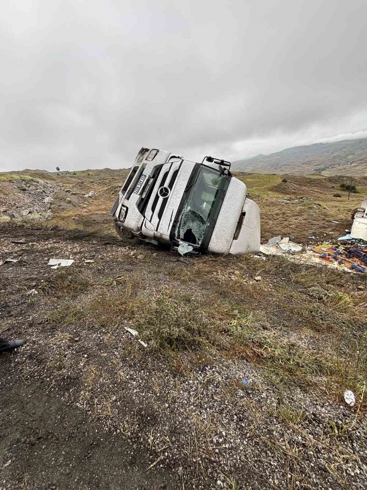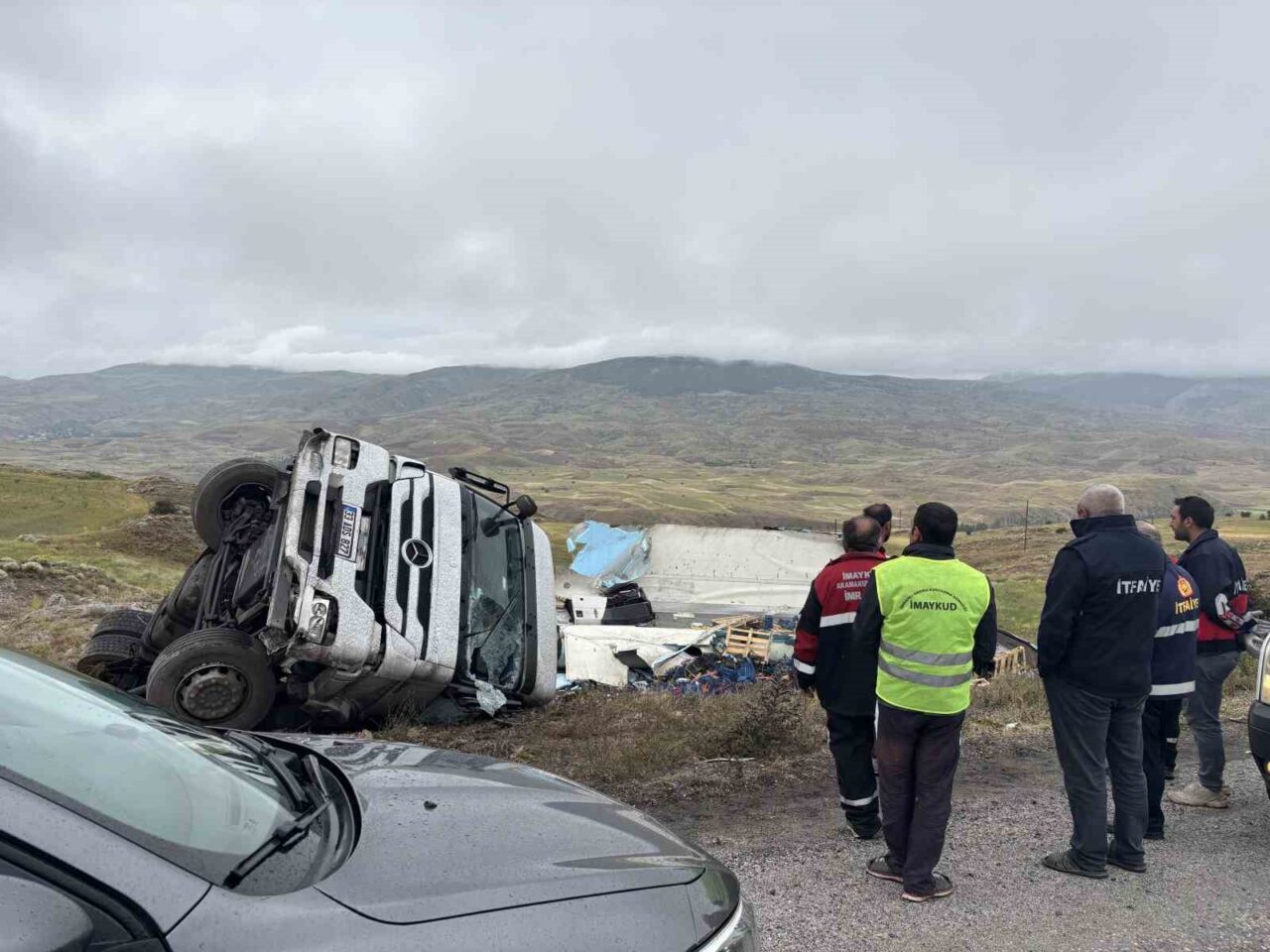 Edinilen bilgiye göre olay Sivas -Erzincan karayolu, Sivas’ın İmranlı ilçesi, Kanlıarmut mevkiinde gerçekleşti. Iğdır’dan yüklediği meyveleri Karaman’a götüren A.K. idaresindeki Mercedes marka tır, yağmur nedeniyle kayganlaşan yolda kontrolü kaybederek karşı şeride geçip devrildi. İmranlı Arama Kurtarma Timi (İMAYKUT), Jandarma ve sağlık ekiplerinin müdahalesiyle yaralı sürücü araçtan çıkartılarak ambulansla İmranlı Devlet Hastanesi’ne kaldırıldı. Sürücünün hayati tehlikesinin bulunmadığı belirtildi. Kazayla ilgili inceleme sürüyor.