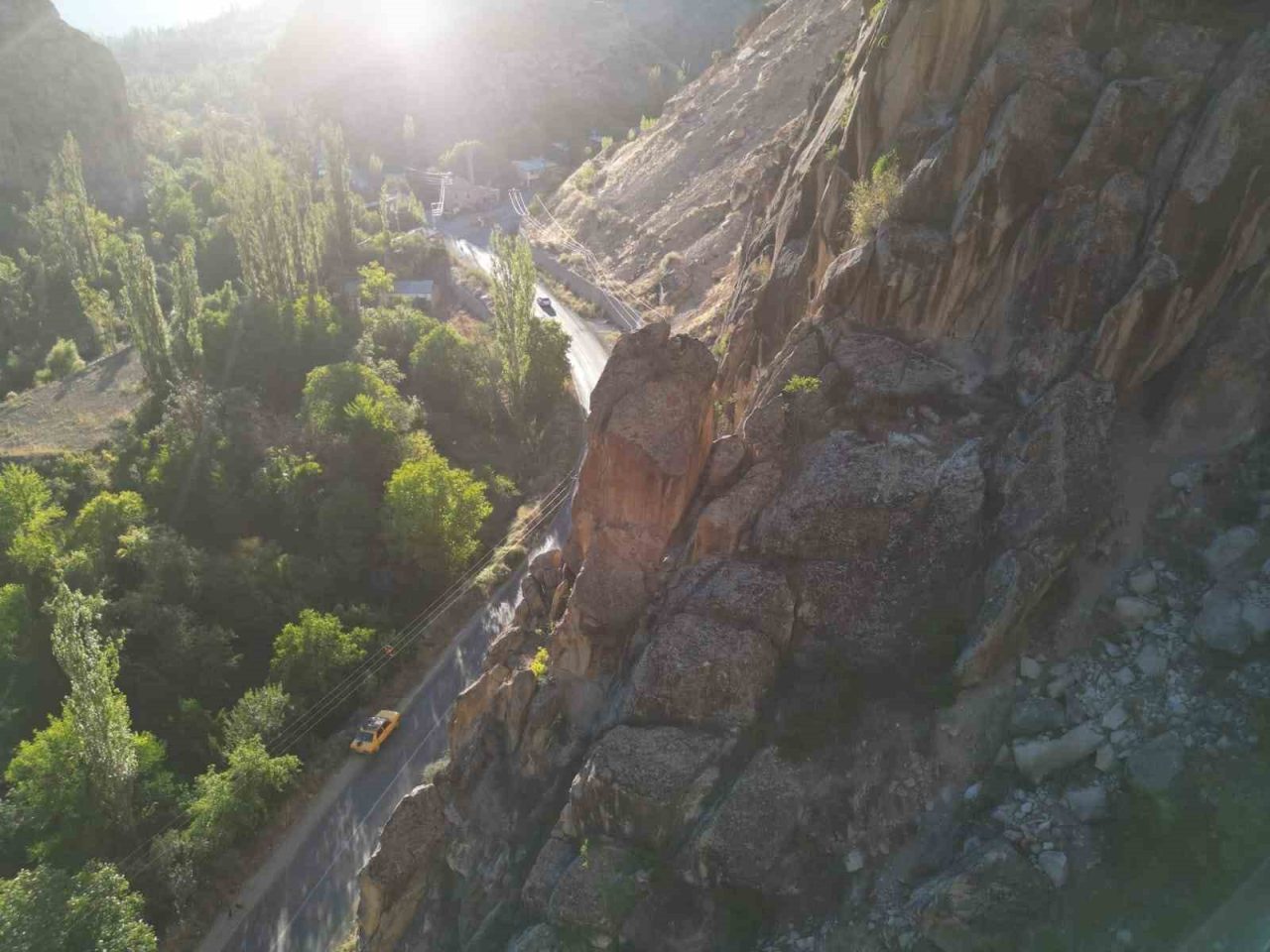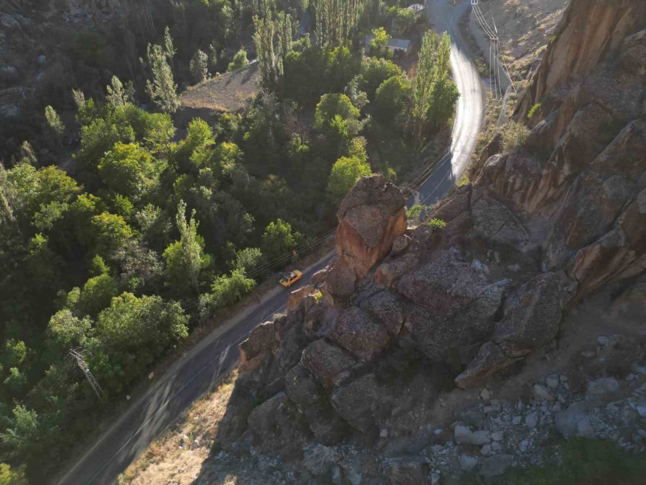 ERZURUM’UN UZUNDERE İLÇESİNE BAĞLI PEHLİVANLI MAHALLESİNDEN GEÇEN 7 KÖYÜN YOLU İLE BAZI VATANDAŞLARIN EV VE BAHÇELERİ, DAĞ YAMACINDAKİ DEV KAYALARIN TEHDİDİ ALTINDA. ÇATLAYAN VE KIRILAN KAYALAR HER AN DÜŞEBİLECEK DURUMDA BÜYÜK BİR TEHLİKE OLUŞTURUYOR.