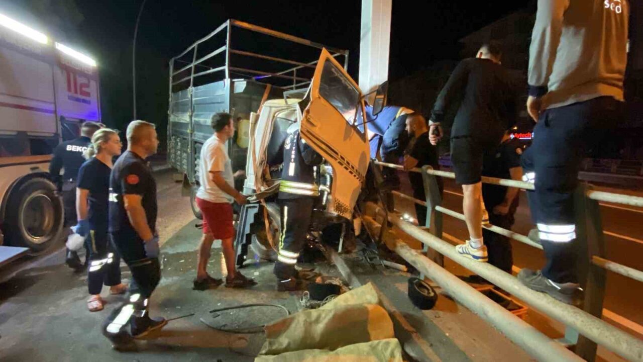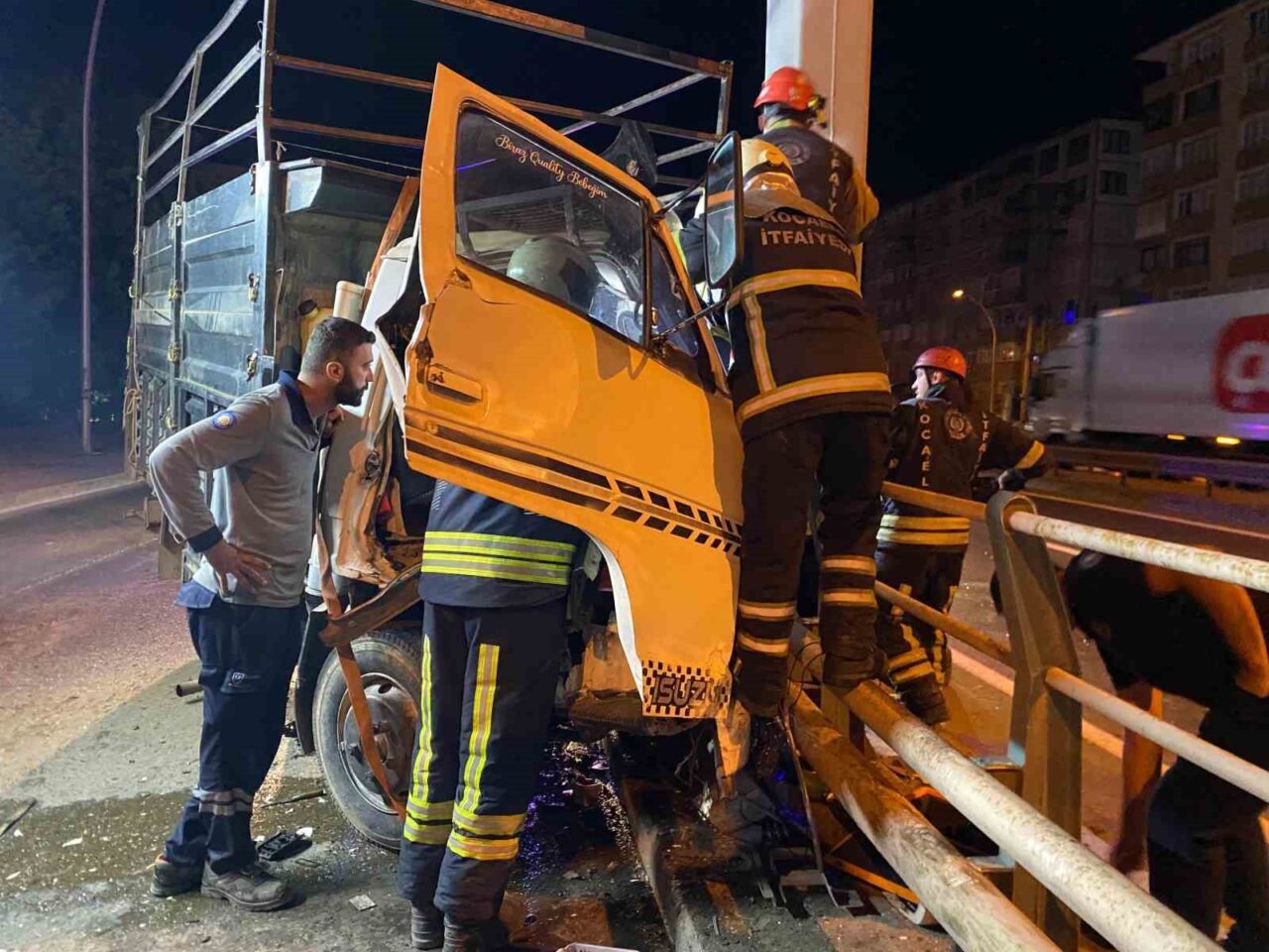 Kocaeli’nin İzmit ilçesinde yol ayrımındaki yön levhasının direğine çarpan kamyonetin kupası adeta kağıt gibi ezildi. Araç içinde sıkışan sürücü, itfaiye ekipleri tarafından çıkarılıp yaralı olarak hastaneye kaldırıldı.