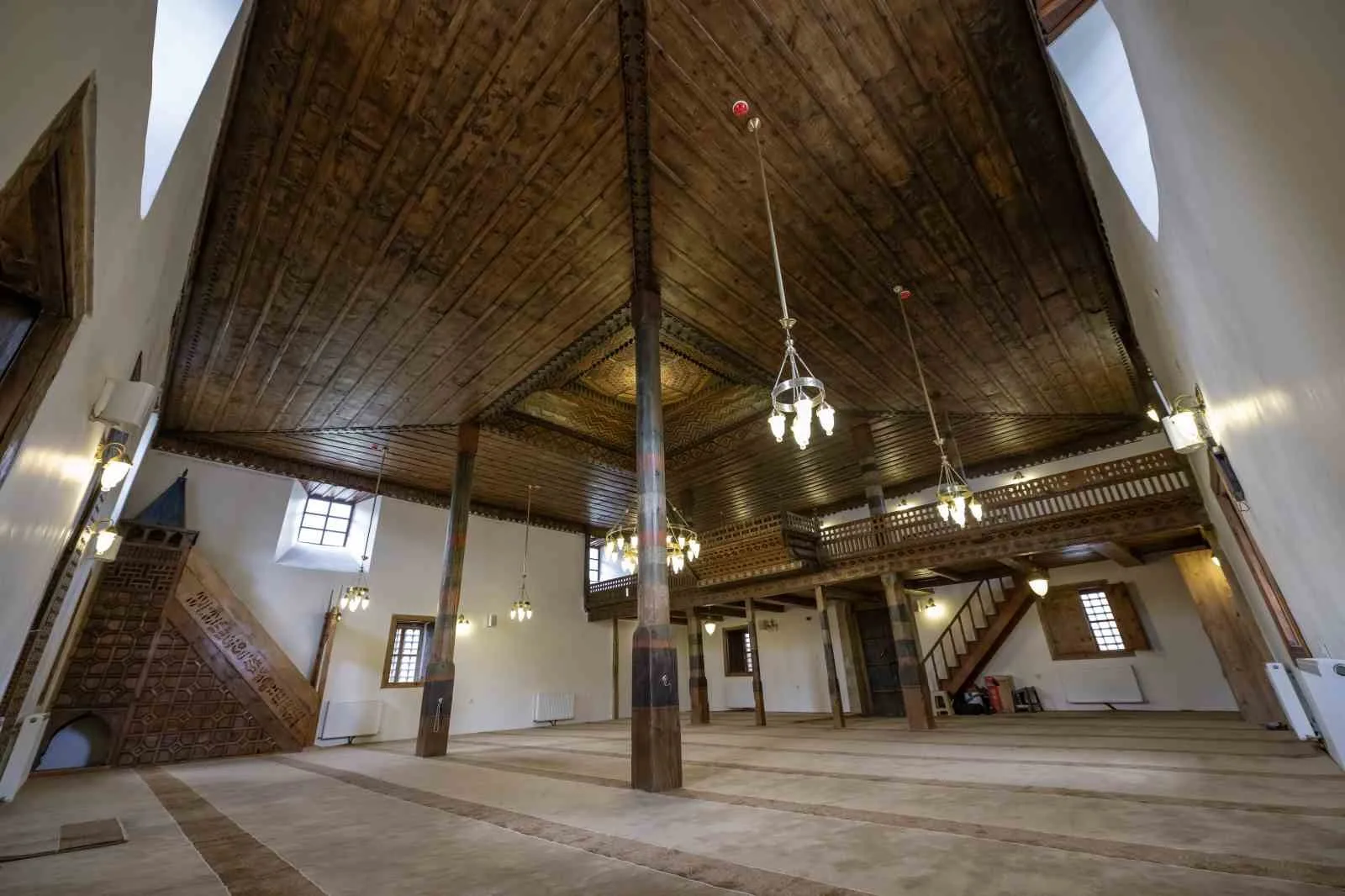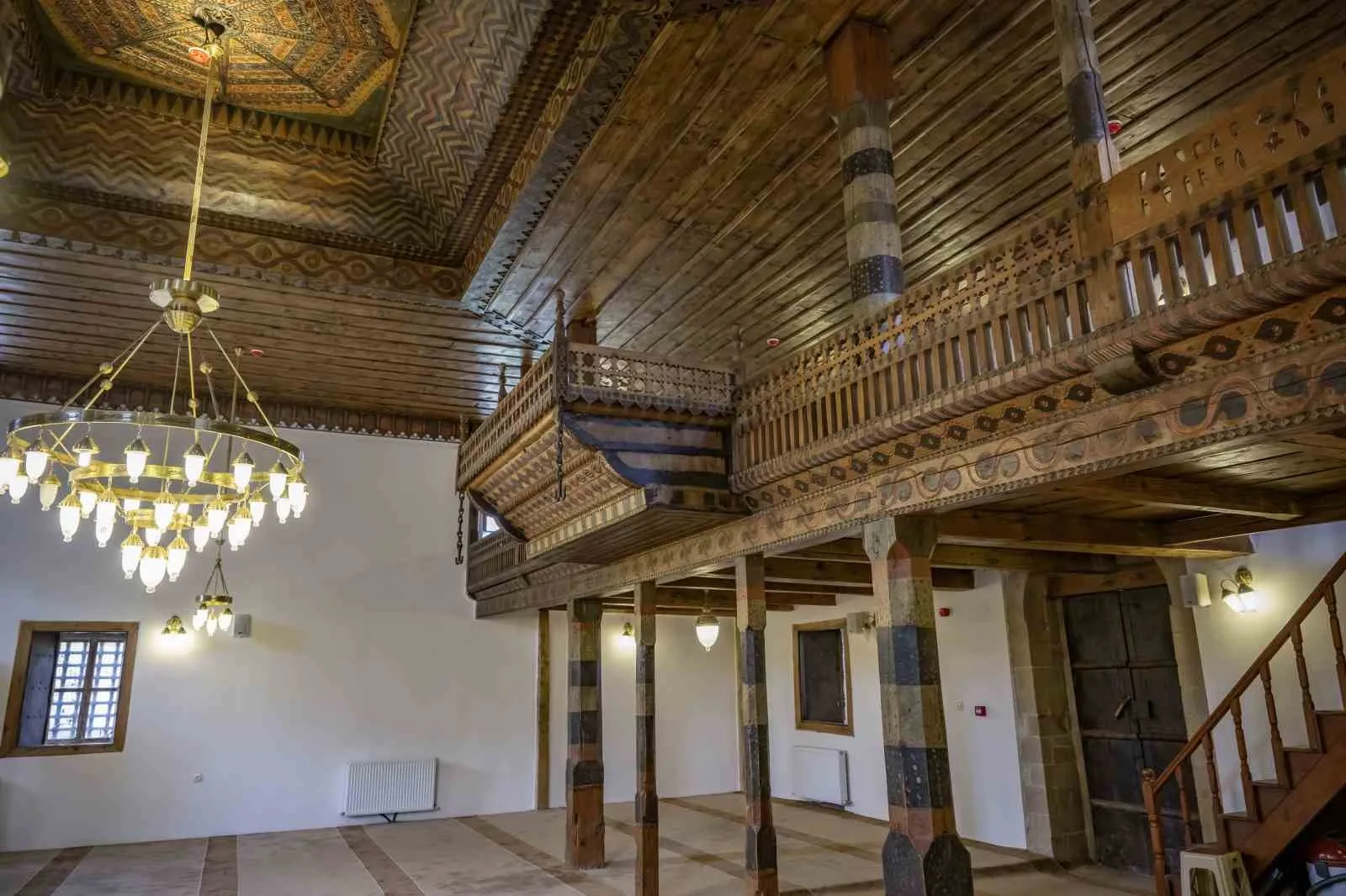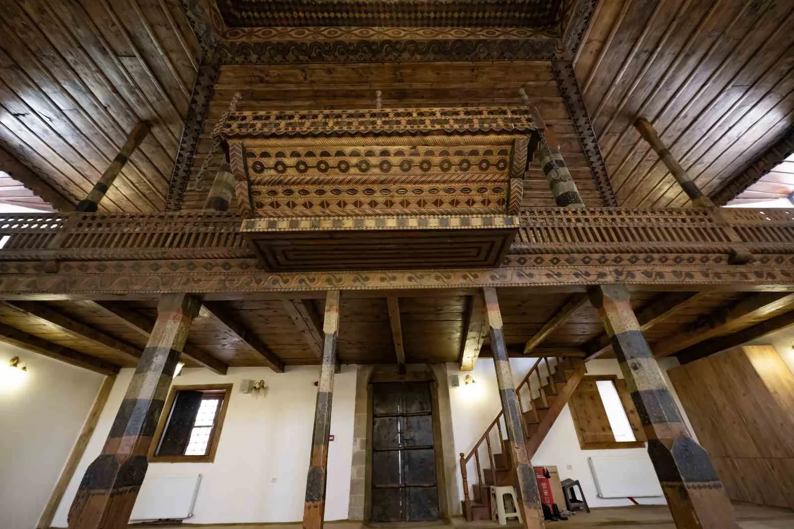 TAVUSKER CAMİİ, AHŞAP İŞLEMELERİ VE KÖK BOYALARI İLE RENKLENDİRMESİ İLE GÖRENLERİ ETKİLİYOR.