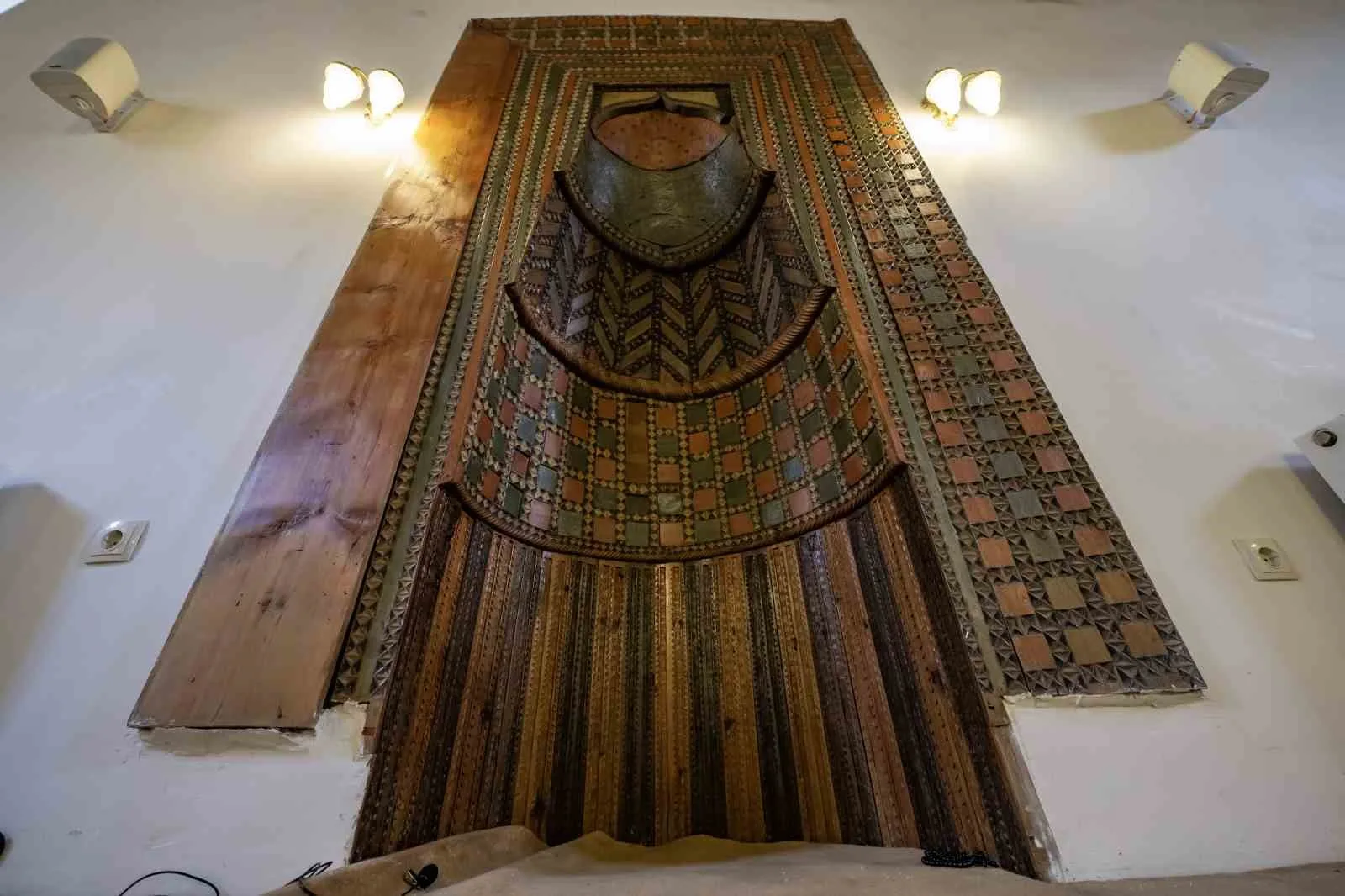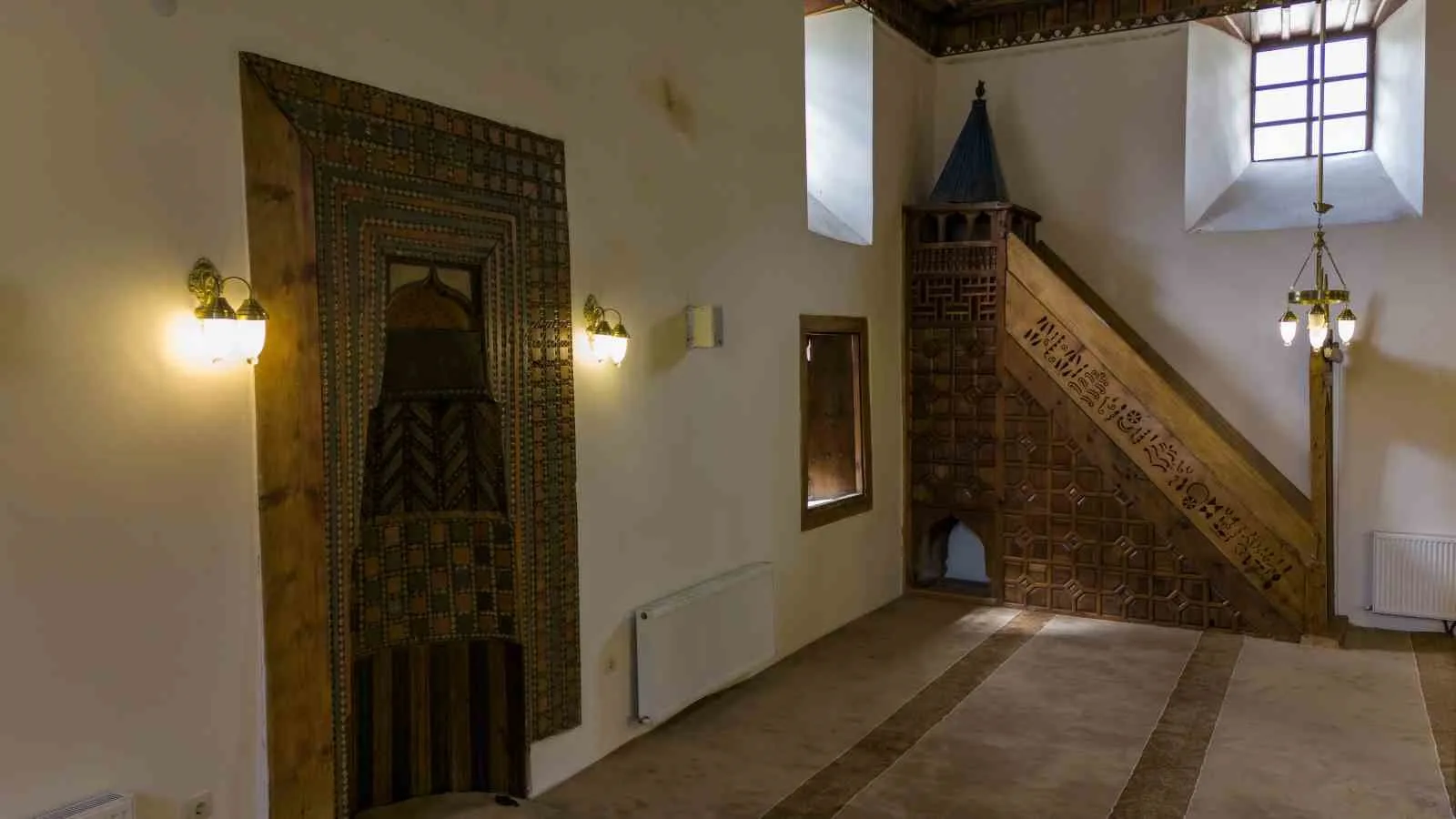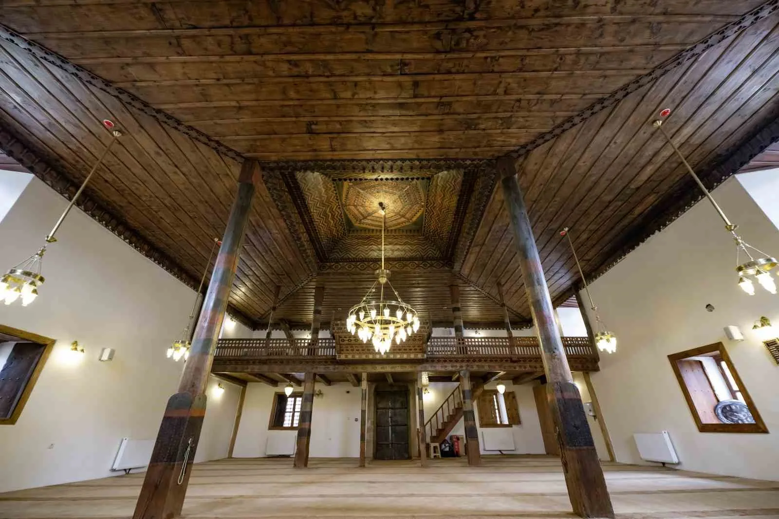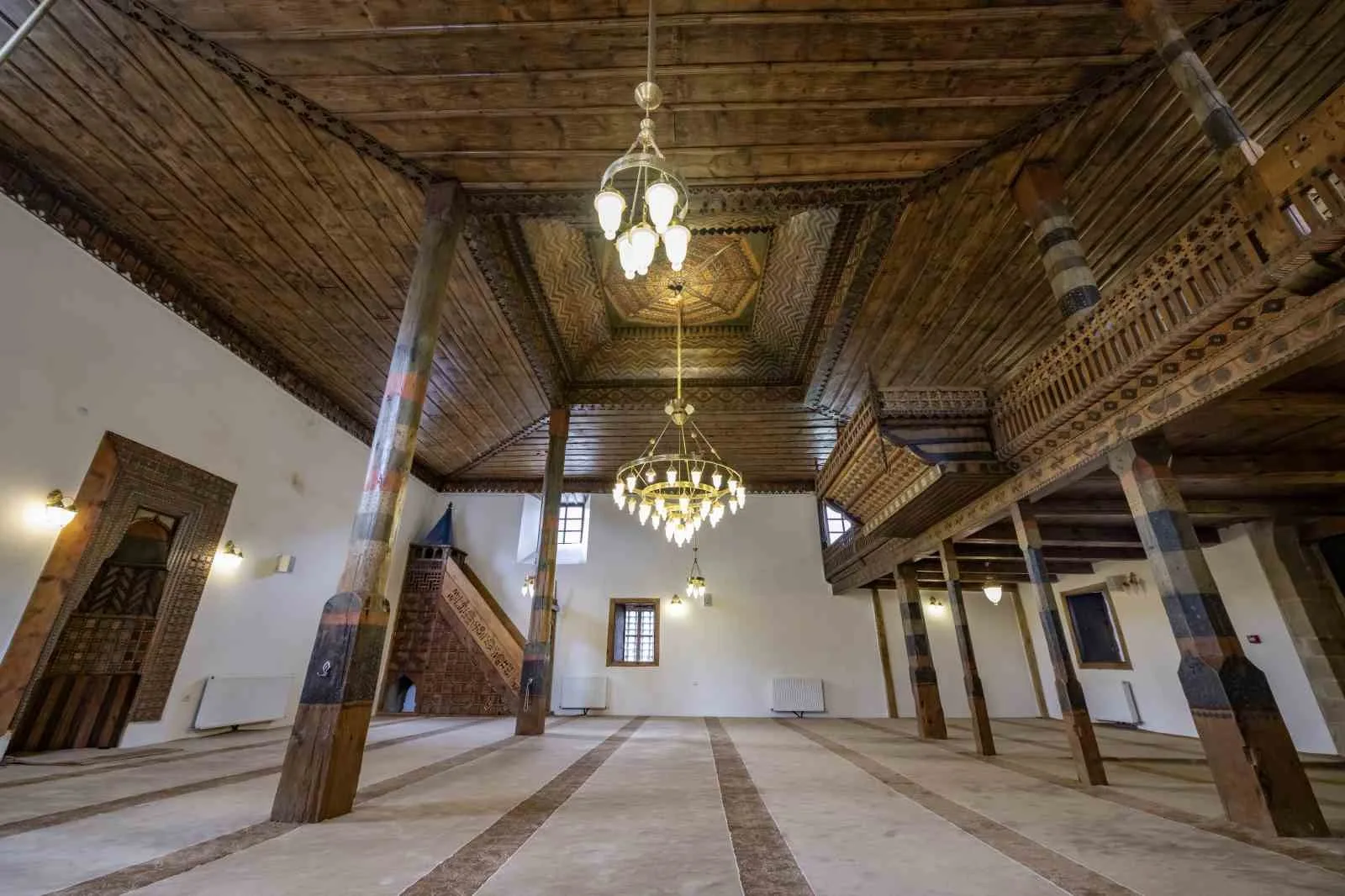 TAVUSKER CAMİİ, AHŞAP İŞLEMELERİ VE KÖK BOYALARI İLE RENKLENDİRMESİ İLE GÖRENLERİ ETKİLİYOR.